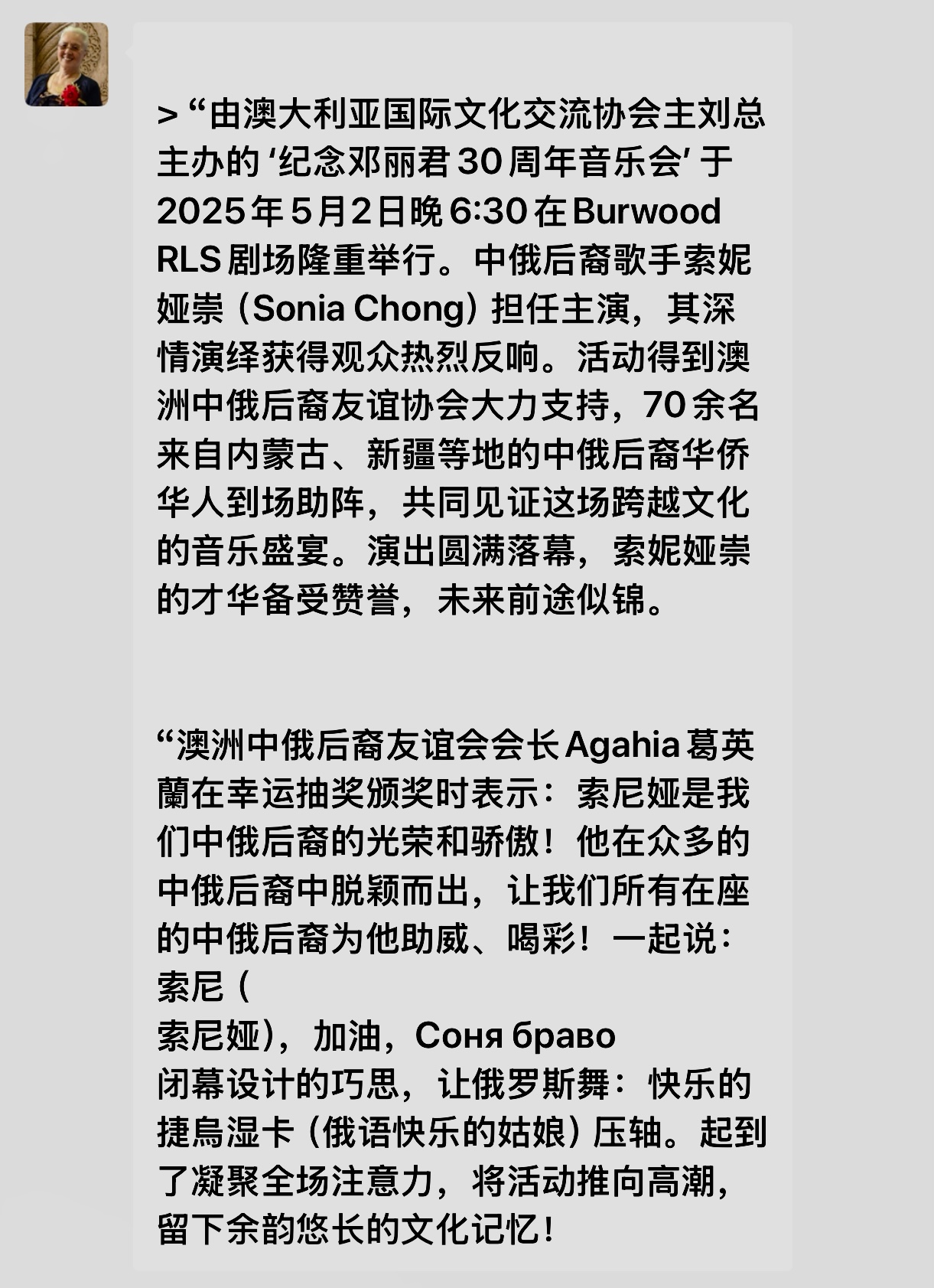 On December 4th, members of the Australian Russian-Chinese Friendship Association participated in a music gathering hosted by Fairfield Council. This enriched community activities and was deeply loved by residents.