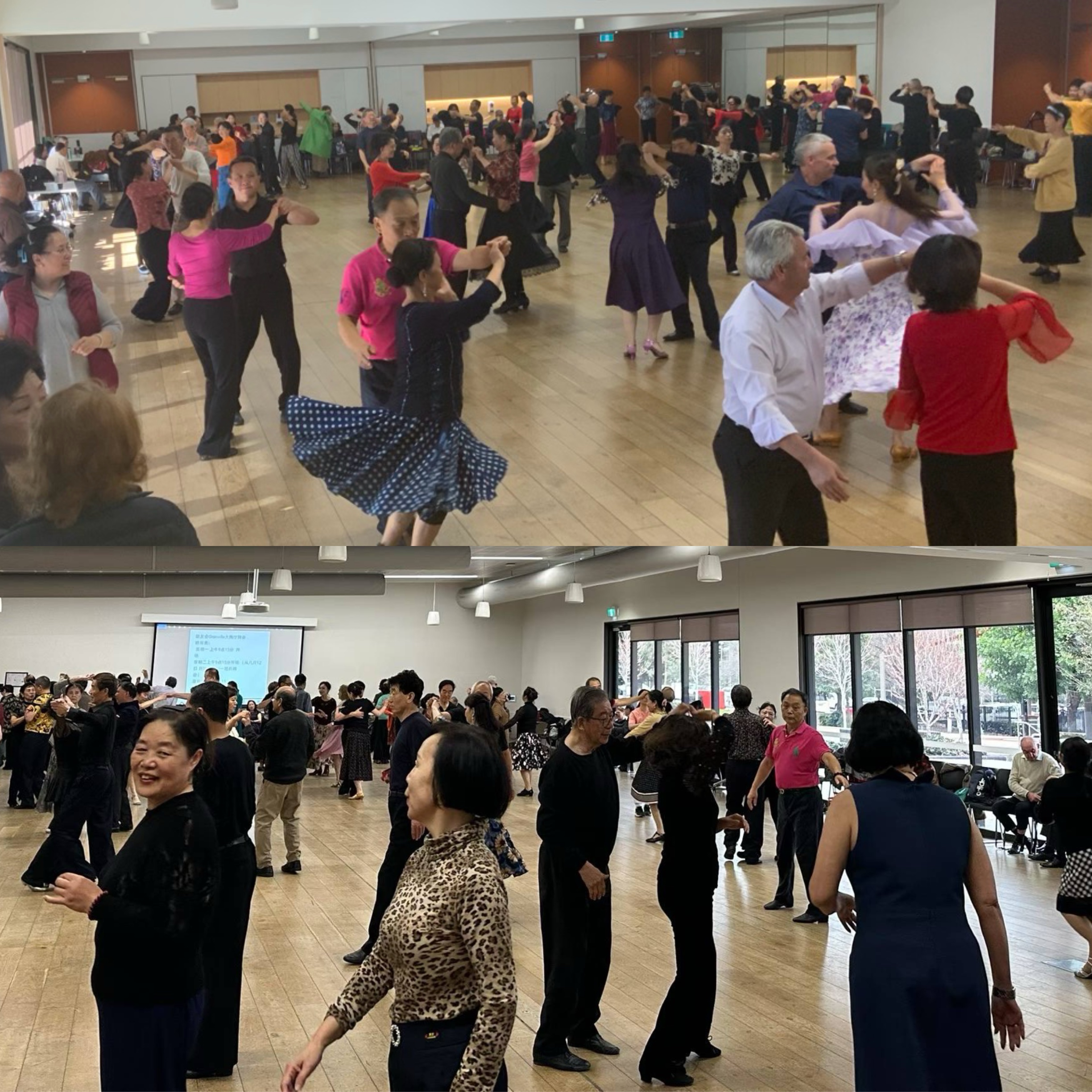 Wednesdays 11:30 – 1:30 pm, Pennant Hills Ballroom. Through video advertising, Vice President Zhang Xiumei diligently manages the ballroom. With the strong support of several art teams, the music of “Little Apple” fills the venue. The teachers and students dance youthfully together, and the enthusiasm of the dancers is growing.