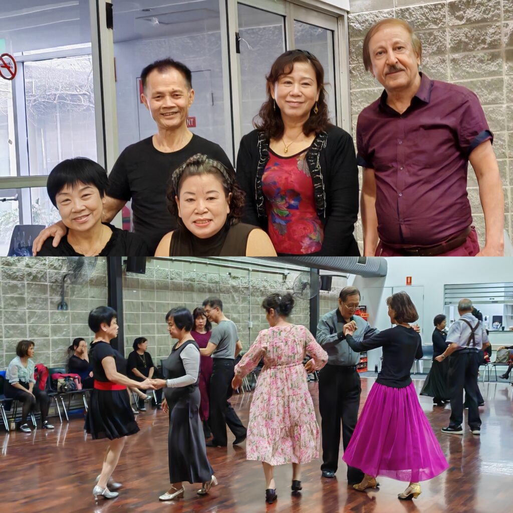 Auburn Town Hall Ballroom and New Vogues Dance Training Class. Zhang Shaofen provided the dancing instructions. The lively volunteers were enthusiastic, and dancer participation is increasing.