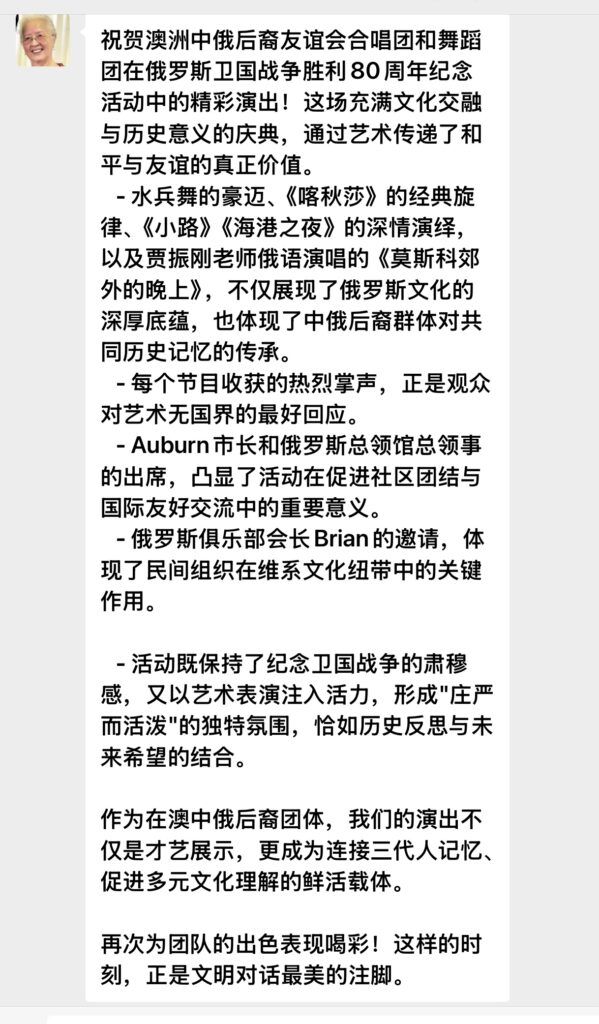 非常感谢《中俄后裔友谊会》组织这场庆功宴它激励和推动大家继续加油.在前进的路上不断奋进,活动圆满成功!