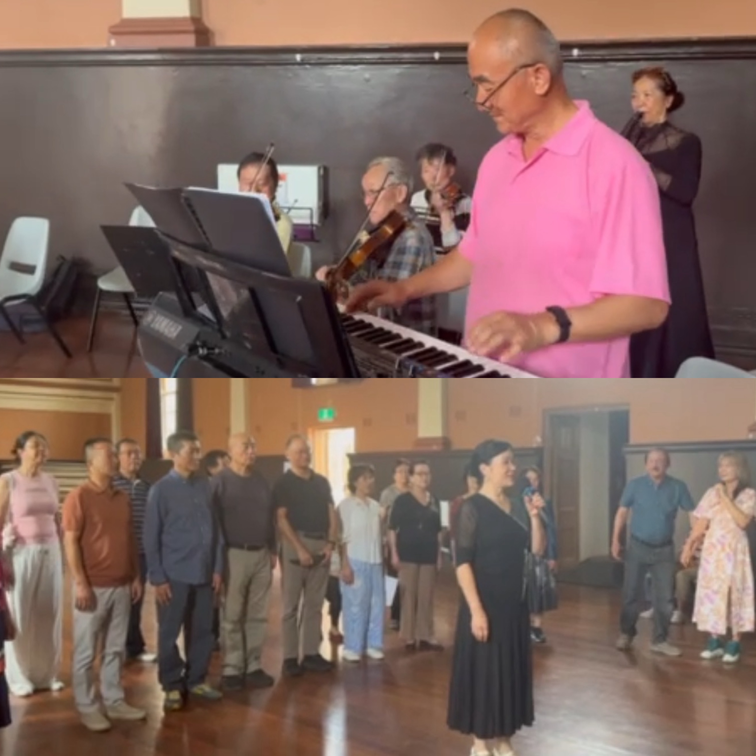 為迎接3月Fairfield Council 舉辦的老人週藝術參賽活動.由葛會長的親自領導.楊娜副會長的精心策劃.聯友會之聲.藍花楹合唱團.卡市合唱團共同組成的一支大型合唱隊伍. 2月份進入緊張排練中.老友樂團緊密配合.蘭蘭老師細心輔導.在隊員們緊密配合下.成績顯著.